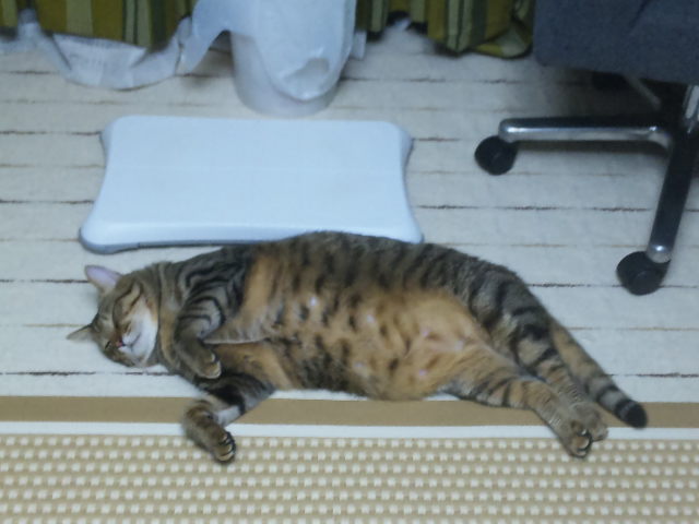 ちーちゃん、母ちゃんと一緒にダイエットしましょうね。このままだと猫メタボになっちゃうぞ~。ウチは二匹とも毎日外に遊びに行ってるので運動不足はないだろうけどノラの方がやや太ってきて昨日計ったら5.5キロありました。これってオスでは平均値より高いのかな?ちなみにチビは4.5キロありました。チビはいつもこれくらいで安定してますよ。