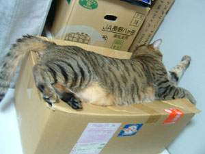 チビもダンボールと言うか箱物が好きで見かけるとすぐに乗ったり、入ったりしますよ。